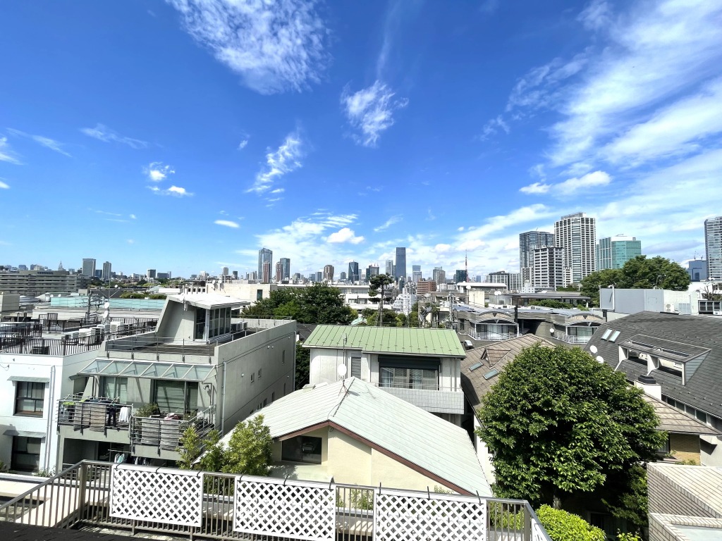 「白金台」駅徒歩6分。「三光坂」の丘陵に佇む。東京タワーを望むルーフバルコニー、最上階角部屋3LDK。専用使用権付き駐車場有