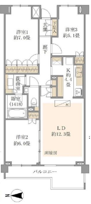 3LDK/76.75m²