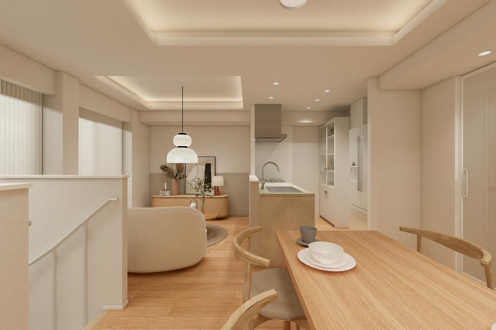 ※掲載されている完成予想図は設計段階の図面を基に描き起こしたもので、実際とは異なる場合がございます。なお、予想図に描写されている家財道具は販売対象には含みません。可視性を高めるため壁の一部を透過描写している場合がございます。