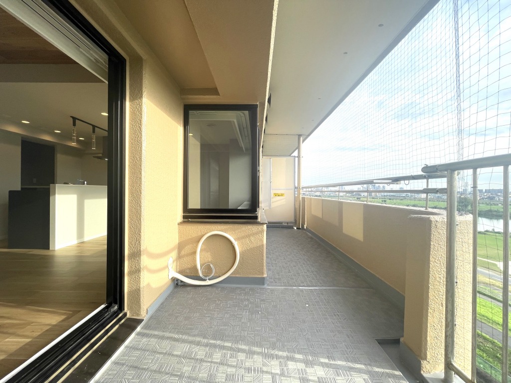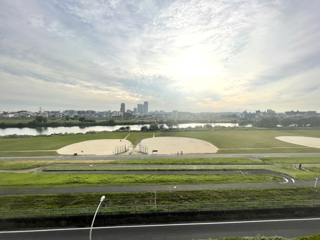 多摩川河川敷まで徒歩2分。開放感のある多摩川ビュー。2面バルコニーあり、陽当たり良好な3LDK