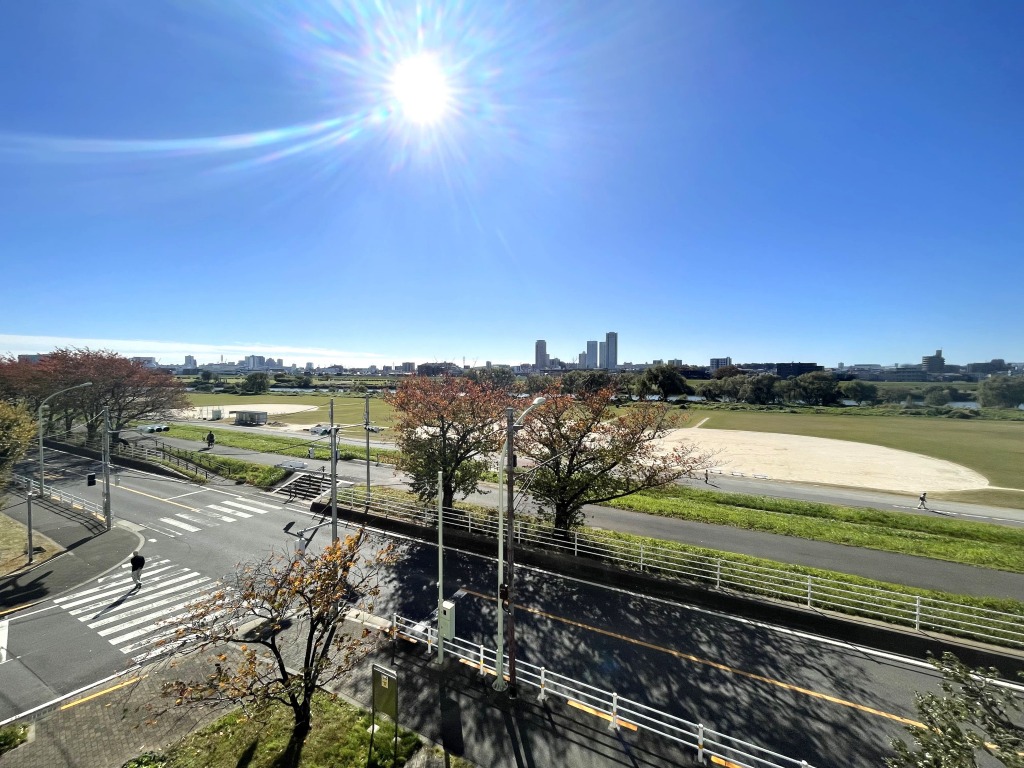 約19,000㎡超の広大な敷地の緑豊かな多摩リバーサイドの高台に位置するタワーレジデンス。充実した共用施設。花火を望む南向き