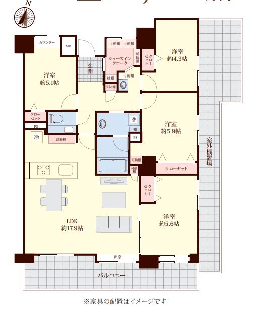 ※掲載されている完成予想図は設計段階の図面を基に描き起こしたもので、実際とは異なる場合がございます。なお、予想図に描写されている家財道具は販売対象には含みません。可視性を高めるため壁の一部を透過描写している場合がございます。