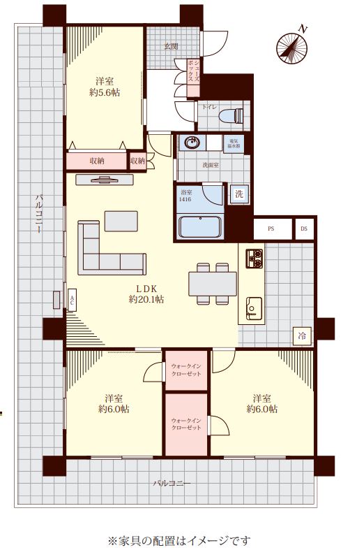 ※掲載されている完成予想図は設計段階の図面を基に描き起こしたもので、実際とは異なる場合がございます。なお、予想図に描写されている家財道具は販売対象には含みません。可視性を高めるため壁の一部を透過描写している場合がございます。