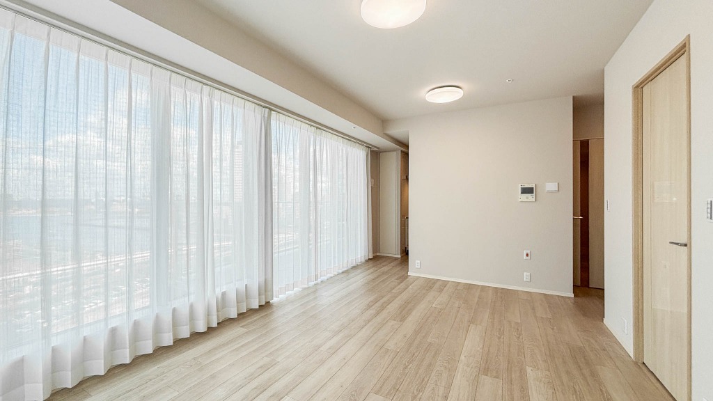 「月島」駅徒歩12分。都心近接、パノラマウィンドウの開放感溢れる大空と運河を見晴らす、ウォーターフロントライフ。スカイツリーも望める角部屋2LDK