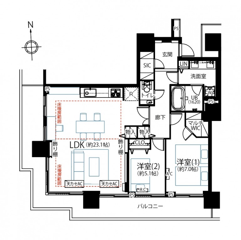 - Point.7 全居室バルコニー面