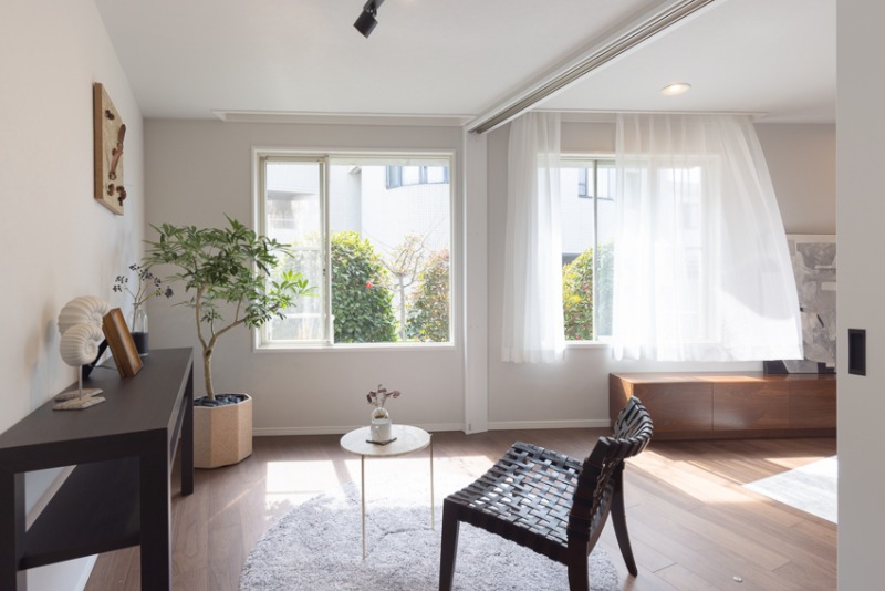 東急田園都市線「駒沢大学」駅徒歩15分。間取りは3LDK+ウォークインクローゼット、《緑と暮らす》をコンセプトにした内装です。室内には、青山フラワーマーケットから派生し、「日常に公園の心地よさを。」をコンセプトに掲げる空間デザインブランド『parkERs』が選定した植栽が配置されています。室内にいながらも緑に囲まれている心地よさを感じていただけます。