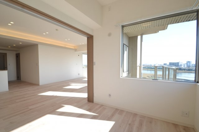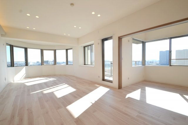 南東向き29.4帖の開放的な空間です。リビングの奥まで日が差し込んできます。