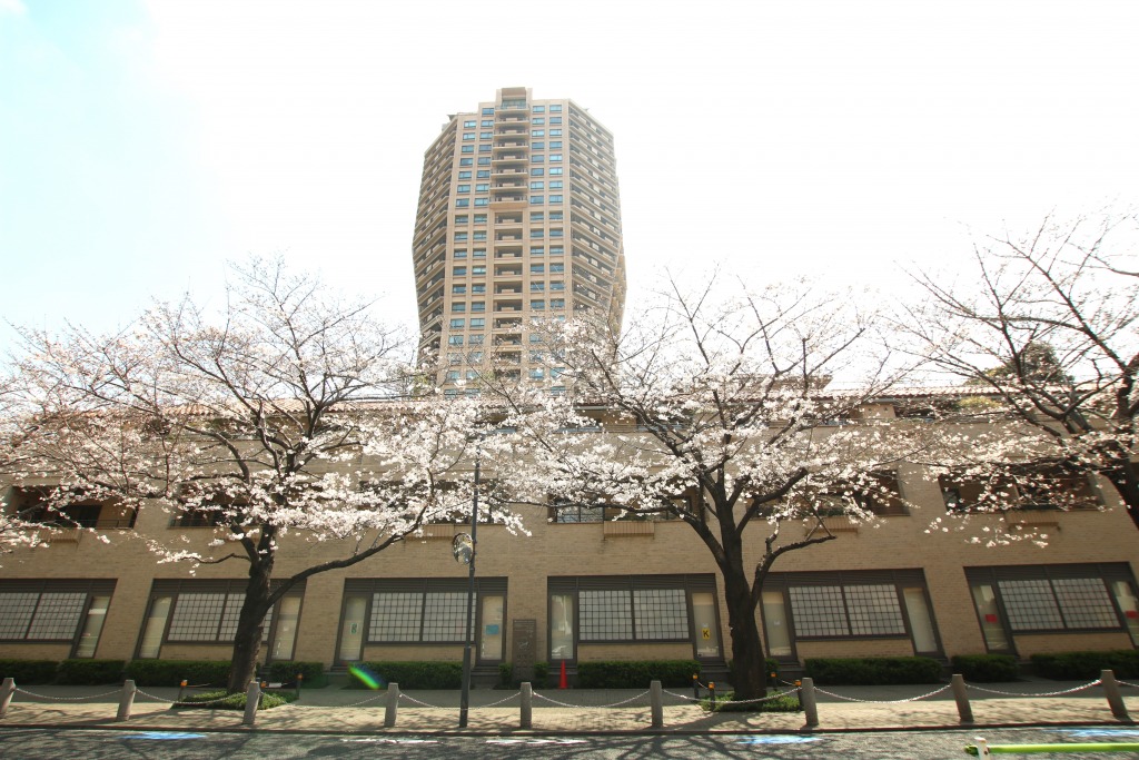 【外観】「森の都市」をコンセプトとしたデザインで、元麻布のシンボルタワー的な存在となっています。敷地の通り沿いには桜並木、広い敷地内には草木を配し、四季折々の自然を感じられます。2002年5月築、竹中工務店施工、森ビル旧分譲、免震の地上29階建て地下4階、総戸数180戸のハイクラスレジデンスです。