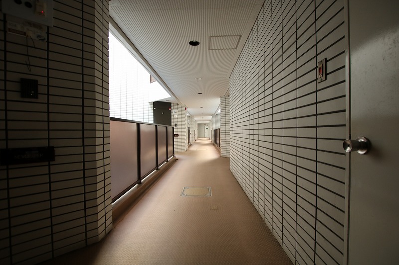 廊下に対して住戸が斜めに設計されたユニークな造り。各戸が独立したデザインに仕上がっています。
