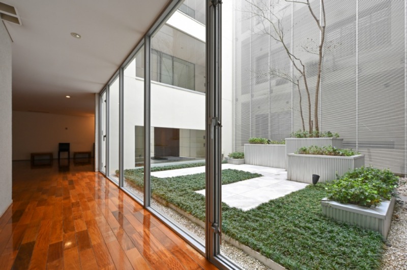ゆとりのあるロビー空間からは、美しくデザインされた中庭が臨めます。