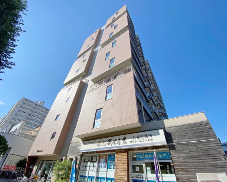 地上15階地下1階建て、総戸数83戸。1973年11月に施工されたマンションです。東京メトロ丸ノ内線「東高円寺」駅から徒歩2分、JR中央・総武緩行線、東京メトロ東西線「中野」駅から徒歩15分と3駅3路線利用可能な立地。駐車場と駐輪場を備えています。近隣には蚕糸の森公園があり、自然を感じながら生活できます。