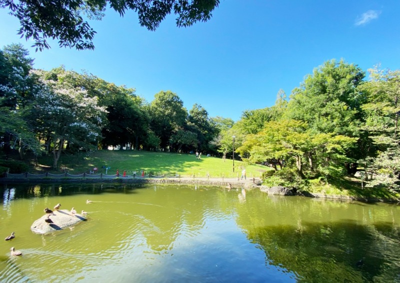 マンションから徒歩2分ほどの位置にある緑豊かな公園です。