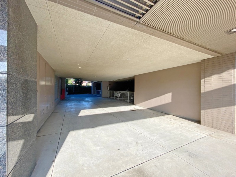 歩道と車道をしっかり分離した、ゆとりある設計のエントランス。
