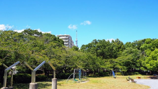 マンションから徒歩14分ほどの位置に「猿江恩賜公園」があります。新大橋通りをはさんで野球場、庭園のある落ち着いた雰囲気の南園と、テニスコートや広場、遊具のある開放的な北園があり、毎日子供の声で賑わっています。