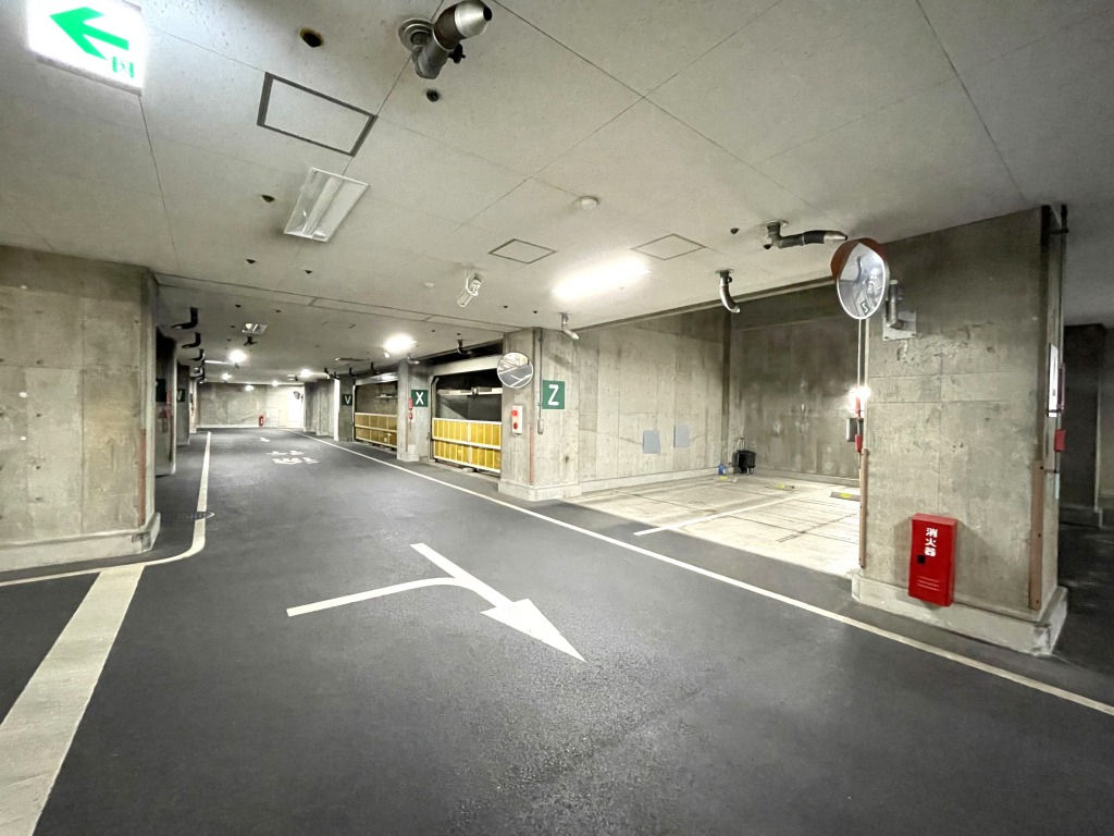 【駐車場】地下の平置き駐車場と、ゲート付きの防犯性が高い機械式駐車場です。屋内なので天候による汚れや日焼けなどからも大切なお車を守ります。